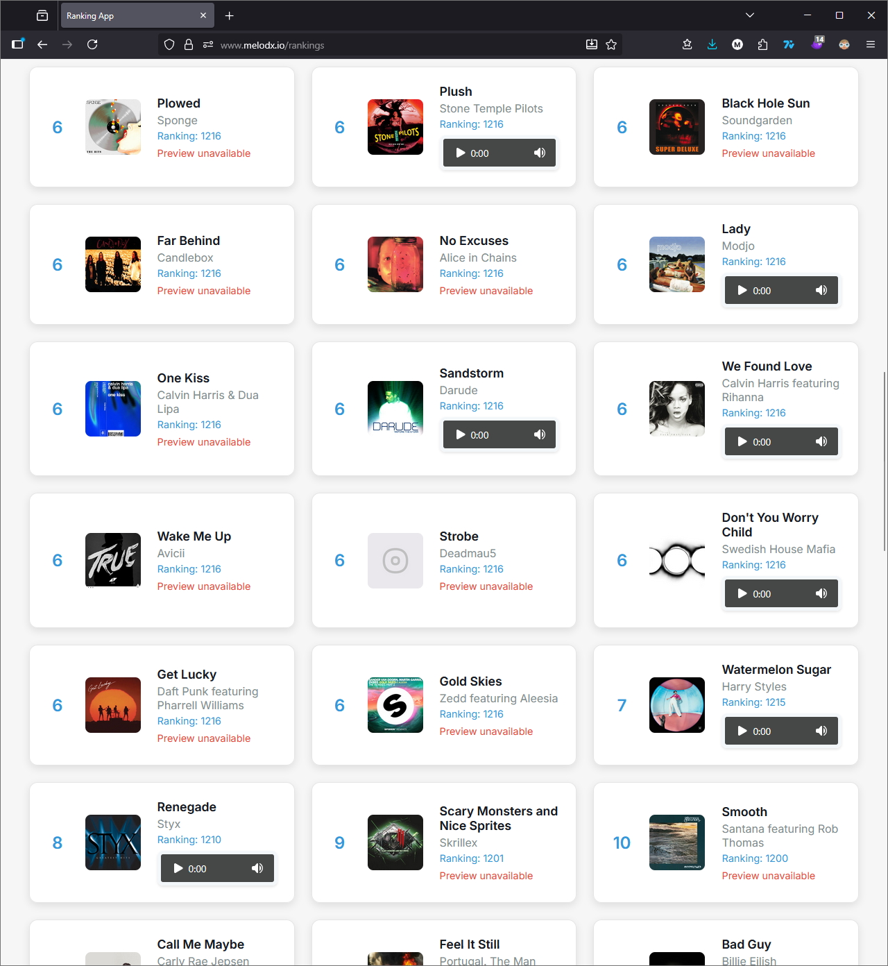 DEF-002 — Expired Deezer Preview Links in /rankings
